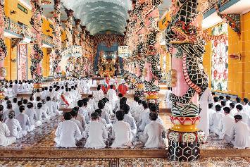 Im Anschluss genießt Du ein traditionelles vietnamesisches Mittagessen, bevor es weiter in die Provinz Tay Ninh geht. Dort besuchst Du den farbenprächtigen Cao Dai-Tempel – ein faszinierendes Bauwerk, das Elemente verschiedener Religionen wie Buddhismus, Taoismus, Konfuzianismus und Christentum vereint.